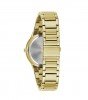 Designed by Bulova. Sleek and polished, with single diamond at 12 o'clock and minimalist-design hour markers on matte champagne dial and gold-tone metallized finish on bezel. Slimmer-profile gold-tone stainless steel case and bracelet with double-press fold-over closure. * Case Diameter: 40mm * Case Thickness: 7.8mm * Water Resistance: 30M * 3-Year Limited Warranty