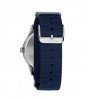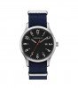 Designed by Bulova. Timeless design meets versatile style. Three-hand date feature and easy-to-read numerals with bold 24-hour design on matte black dial. Stainless steel case and two interchangeable NATO straps in navy blue and olive green. Case Diameter: 40mm Case Thickness: 9.1mm Water Resistance: 30M 3-Year Limited Warranty