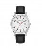 Designed by Bulova. Timeless design, wear-with-everything style. Complete with easy-to-read numerals with 24-hour design and three-hand date feature. Stainless steel case and black leather buckle closure strap are the finishing touches on this classic watch.