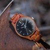 Dubline Redwood Black mens watch is made with natural redwood. Designed with a black sun ray dial detailed with silver glow-in-the-dark hourly markings and hands.