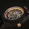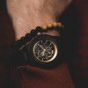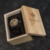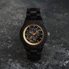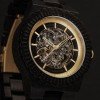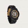 Our Limited Edition AUTOMATIC Extreme Voyager features a 21 jewel self-winding automatic mechanical movement with a 36 hours power reserve. The open heart (see-through) dial has a sapphire coated glass on top and a backplate that is engraved with a unique number for each watch (1 - 100). The watch is automatically charged on the go by kinetic energy of your wrist, meaning no battery is needed to charge the watch. The AUTOMATIC Extreme Voyager is made of African Ebony Wood with golden details.