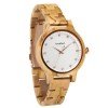 Emma Olive Fog, a subtle glimmering dial accented with rose gold diamonds. A minimalist design framed gracefully in a patterned olive wood case and band, subtle beauty made natural.