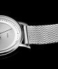 Stainless Steel Case on Mesh Bracelet, Silver Dial, With Black Accents, And Diamond at 12