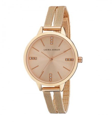 Laura Ashley Rose Gold Split Mesh Band Sunray Dial Watch