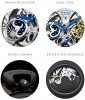 Skeletonized Twin Barrel Movement Decorated with Cotes de Genève on Back Plates and Pillar Plates Accented with Blued Steel Screws and Damier Finished Rotor with Signed Stuhrling Logo