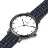 The gunmetal stainless steel case features a white dial for a contrasting, statement timepiece completed by a nubuck leather backed merino wool strap in a dark check pattern.