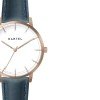 Featuring an elegant 16mm width navy stitched leather strap, the brushed rose gold case with white dial give a clean, feminine style.