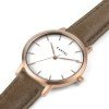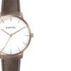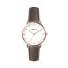 Featuring an elegant 16mm width umber brown leather strap, the brushed rose gold case with white dial give a clean, feminine style.