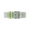 A classic, brushed stainless steel case with white dial sits on an elegant 16mm width strap featuring a pale green 'Ailsa' lambswool strap.