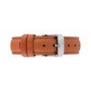 On an elegant 16mm wide edge stitched leather strap in tangerine, the stainless steel case and simple white dial make for a powerful, everyday wristwatch.