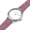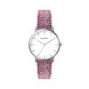 Featuring an elegant 16mm width strap featuring a pale pink 'Flora' Shetland tweed strap, the brushed stainless steel case with white dial give a clean, feminine style.