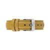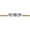 A classic, brushed stainless steel case with white dial sits on an elegant 16mm width strap in mustard yellow with edge stitching.