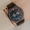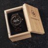This premium designed watch combines natural wood type with a luxurious stainless steel dial and backplate. At the heart of the timepiece is a multi-function movement with two subdials featuring a week and month display. The GRAND Nightowl is made of Wenge Wood from Eastern Africa and has a black dial with golden details.