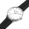 This KT-HUME 40mm-SWBS model watch features a classic combination of 40mm silver case with white dial, on a 20mm width black stitched leather strap.