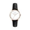 Featuring an elegant 16mm width black stitched leather strap, the brushed rose gold case with white dial give a clean, feminine style.