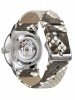 movement refined by rhodium plating, rotor with stripe cut and engraved logo, diamond cut on barrel, blued screws