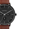 The new Cuillin calendar watch is a premium addition to the Kartel range. A large 43mm black stainless steel case features a black dial with 3 two-layer sub dials tracking the day, date and 24 hour position, beneath toughened low profile mineral glass.