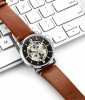 A powerful automatic movement is on full display in both the skeletonized dial and exhibition caseback.
