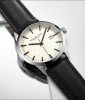 Stainless Steel Case on Black Alligator Embossed Genuine Leather Interchangeable Strap with Additional Tan Genuine Leather Strap, Black Dial, with Silver and White Accents