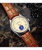Transcend every day with the Celestia, the stunning timepiece that brings a universe to your wrist. Designed to evoke the beauty of the stars in a single watch, our Celestia’s heart features an animated Moon Phase dial that adds an ethereal touch to your time. Captured in a lovingly contoured bezel and finished with a bespoke leather band, the Celestia moves heaven and earth to keep your time on hand and in style.