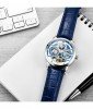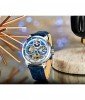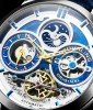 Eye-catching tinted crystal brings an easy readability to Luciano’s skeletonized dial. Boasting a second-time-zone at 9 o’clock and animated AM/PM subdial at 12 o’clock, the Luciano is breathtaking in both its functionality and design.