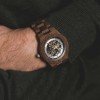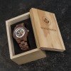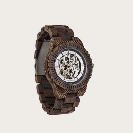 Our Limited Edition AUTOMATIC Marine Explorer features a 21 jewel self-winding automatic mechanical movement with a 36 hours power reserve. The open heart (see-through) dial has a sapphire coated glass on top and a backplate that is engraved with a unique number for each watch (1 - 100). The watch is automatically charged on the go by kinetic energy of your wrist, meaning no battery is needed to charge the watch. The AUTOMATIC Marine Explorer is made from North American Walnut Wood with blue and silver-colored details and has a unique full body pattern engravement.