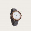 Inspired by contemporary Nordic minimalism. The NORDIC Oslo features a 36mm diameter white zebra wood case with white dial and rosegold details. Handmade from sustainably sourced wood combined with an ultra soft-grey sustainable vegan leather strap.