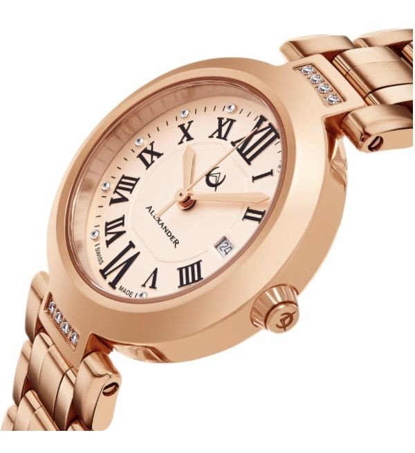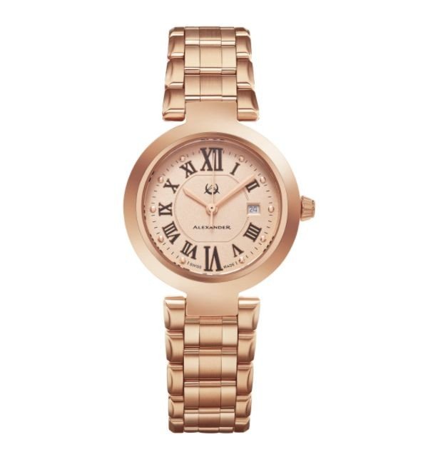 The Niki is a slim (8 mm thick) Swiss-made three-hand timepiece from Alexander's Monarch collection. It features a combination of polished and satin brushed surfaces, in particular a beautifully finished caseband (side of case) with horizontal satin finish. The round bezel is finished in high-polish. The trapezoidal fluted crown offers generous dimensions for easy grip and features the Alexander logo in relief on a brushed background. The caseback is brushed and polished with four distinctive recessed screw-points for a beautifully balanced look.