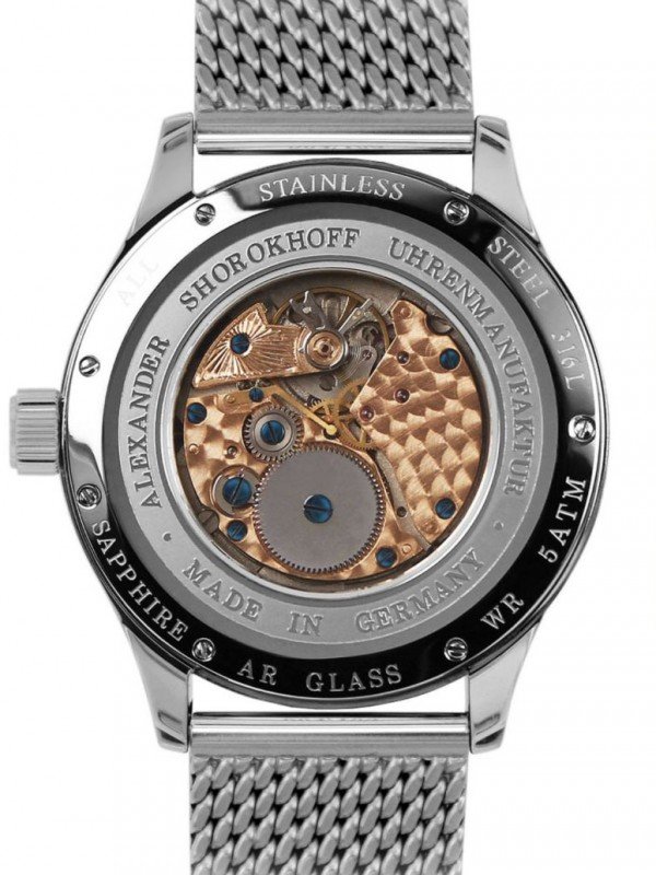 7-fold screwed case back with sapphire crystal