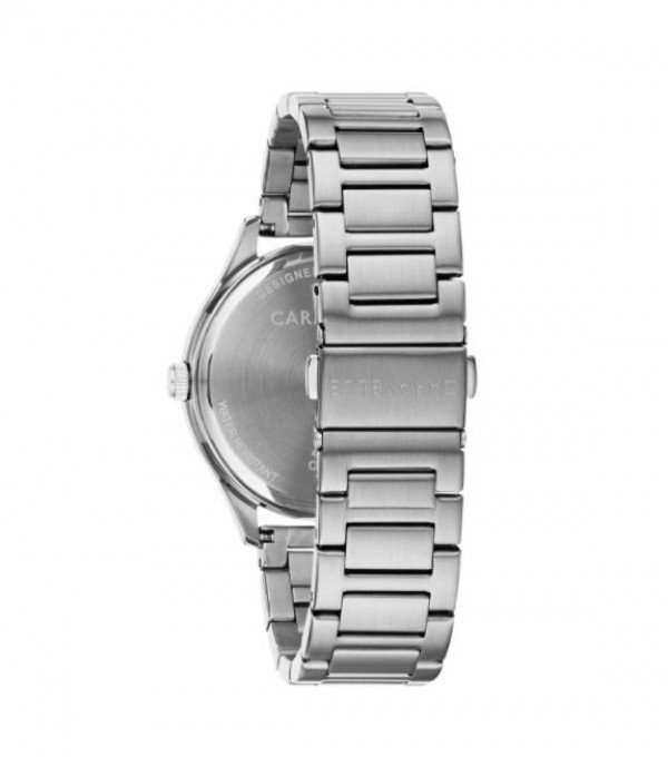 Designed by Bulova. Sleek precision with a contemporary edge. Minimalist-design hour markers on black sunray dial and five-hand multifunction feature with date and 24-hour sub dials. Stainless steel case and bracelet with double-push fold-over closure. * Case Diameter: 41mm * Case Thickness: 8.5mm * Water Resistance: 30M * 3-Year Limited Warranty