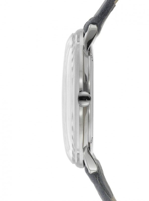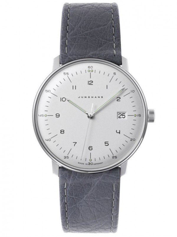 a dark brown Junghans calf leather strap with stainless steel clasp is included