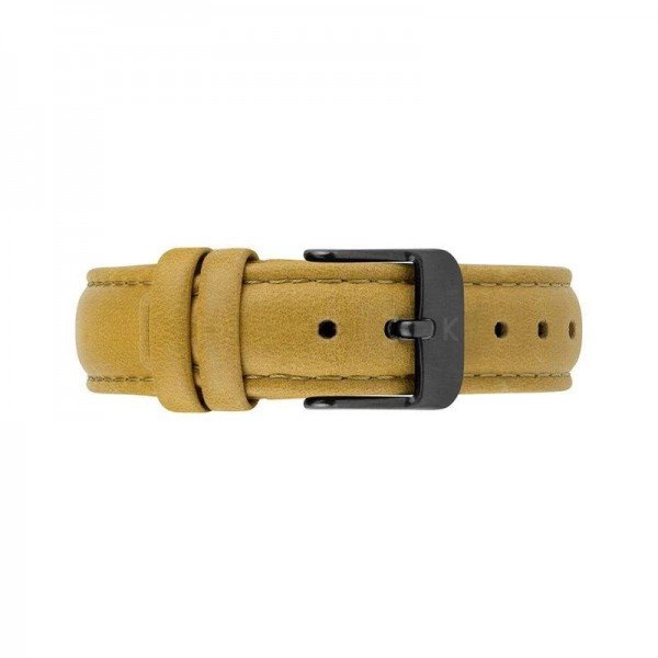 On an elegant mustard yellow leather strap, with edge stitching, the gunmetal case with white dial give the watch a unique style.