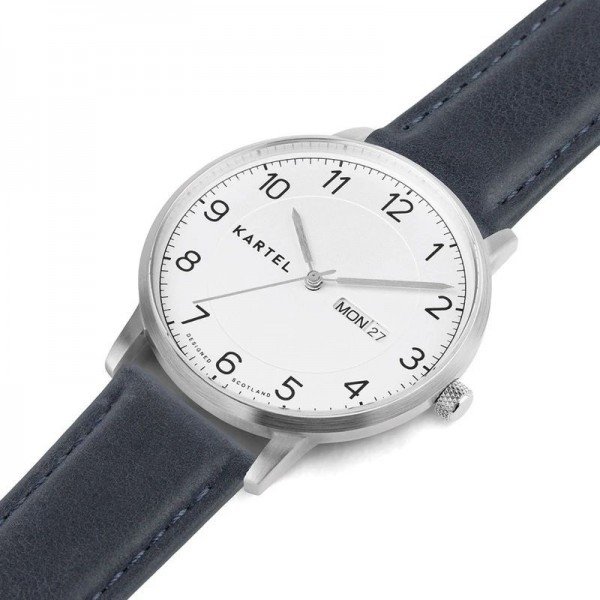 The Morris model watch uses a 40mm case allowing room for numerals at the hour positions, a first for Kartel, and the day and date of the month shown in the date window. The case and glass gives a low profile for an unobtrusive timepiece that you can wear in all settings from casual to business.