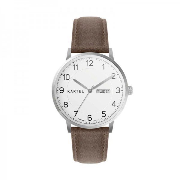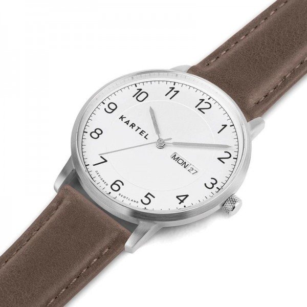 The Morris model watch uses a 40mm case allowing room for numerals at the hour positions, a first for Kartel, and the day and date of the month shown in the date window. The case and glass gives a low profile for an unobtrusive timepiece that you can wear in all settings from casual to business.