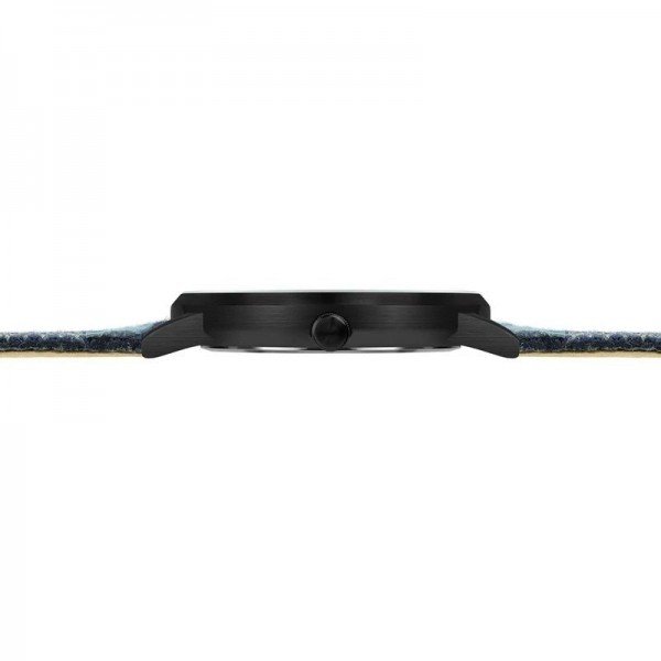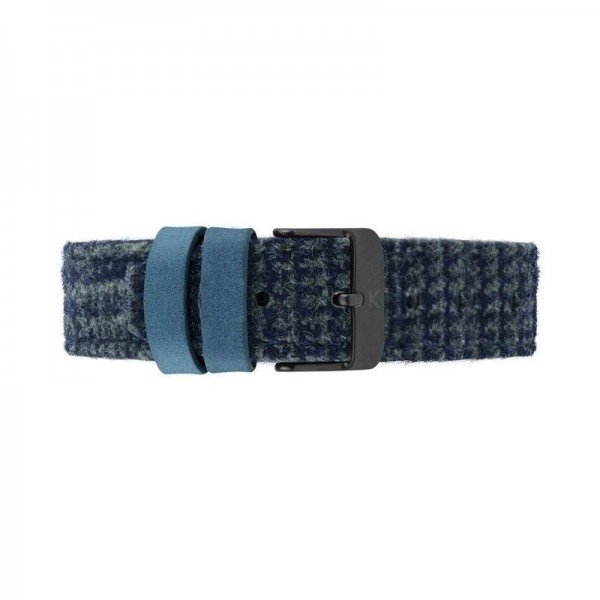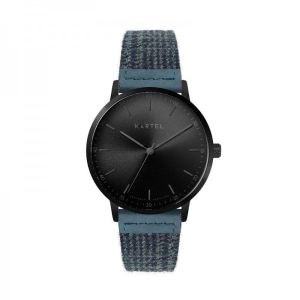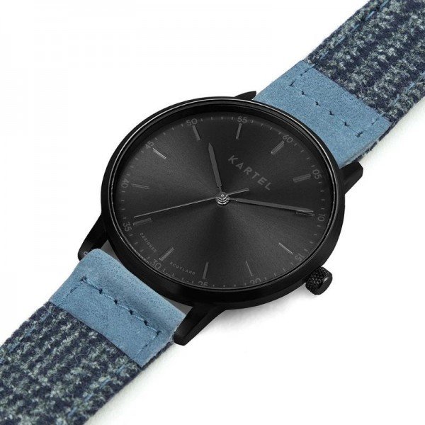 This KT-HUME 40mm-BBFM model is a statement all-black combination of 40mm case with sunray dial on a blue check pattern merino strap with blue leather end detail.