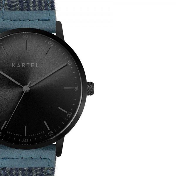 The dial design features a Kartel logo, simple hour markers and discreet numerals in 5 minute increments.