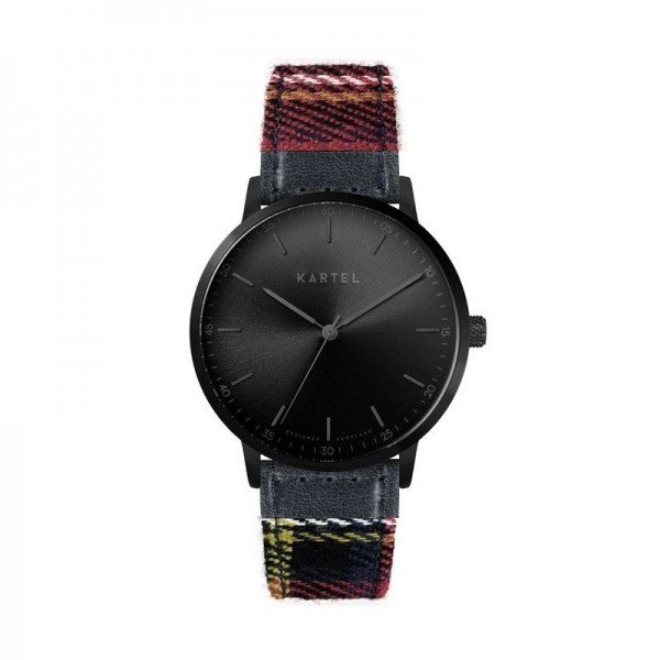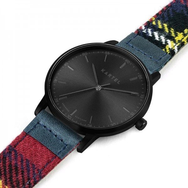This KT-HUME 40mm-BBRS model is a statement all-black combination of 40mm case with sunray dial on a Royal Stewart tartan strap with blue leather end detail.