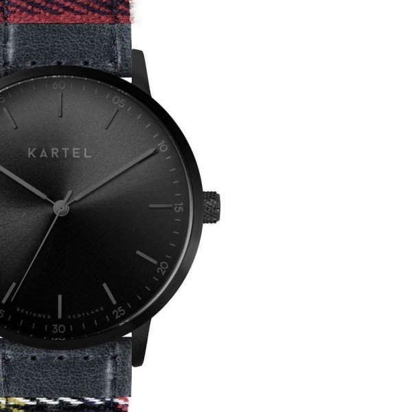 The dial design features a Kartel logo, simple hour markers and discreet numerals in 5 minute increments.