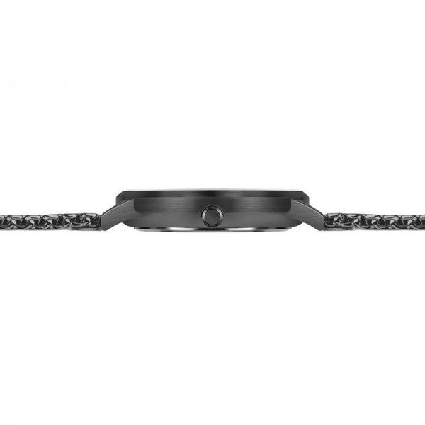 The Isla case is sized for a more petitie wrist with this model featuring a gunmetal case and dark grey dial with minimal hour markers and hands keeping it subtle. The 18mm width stainless steel chain mesh milanese strap adds a sleek elegance and hard wearing practicality.