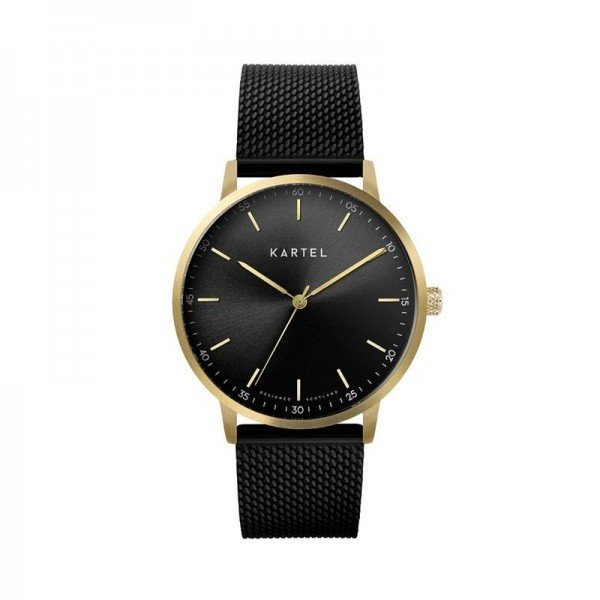 The dial design features a Kartel logo, simple hour markers and discreet numerals in 5 minute increments.