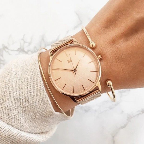 DIAL DETAILS Rose Gold hands & markers / Rose Gold second hand