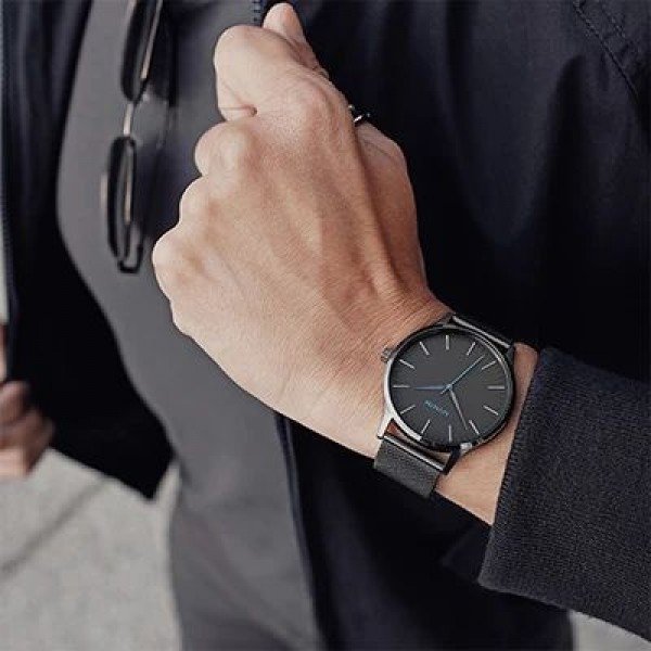 DIAL DETAILS Gunmetal hands & markers / Blue second hand