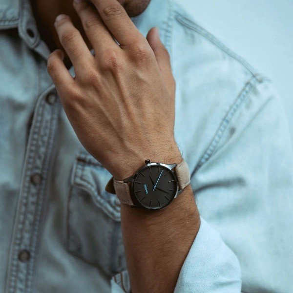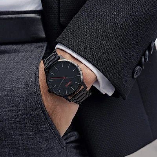 DIAL DETAILS Gunmetal hands & markers / Red second hand