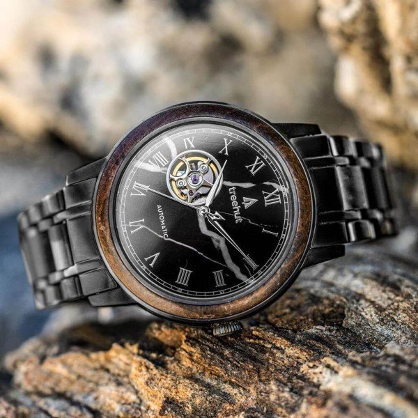 Travel through time with the Atlas Collection - Treehut’s first automatic watch - a combination of elegant style and pure form mechanics for the man who appreciates timeless designs with intelligence and grace. Featuring a real marble dial with a small window revealing the movement, adorned with wood bezel on a vintage inspired barrel-shaped stainless steel case, creating the minimal and versatile everyday watch for the profound well-traveled man.