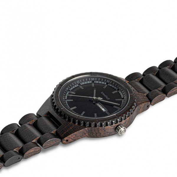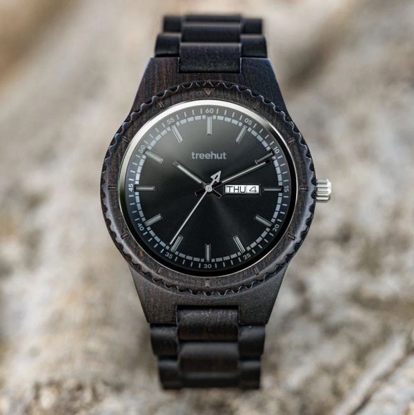 Classic Collection is the very heart of the Treehut brand and will never disappoint. Classic Day-Date is inspired by exploring, being out of bounds and the mechanics of moving parts that gets you to the next stop of your adventure. It features a gear shaped bezel, useful day-date function, dimensional dial constructs with slim light grey hour markers. The case of this Classic Day-Date Ebony Black Monochrome watch is made from ebony wood, producing in a light weight everyday adventure piece.