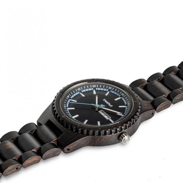 Classic Collection is the very heart of the Treehut brand and will never disappoint. Classic Day-Date is inspired by exploring, being out of bounds and the mechanics of moving parts that gets you to the next stop of your adventure. It features a gear shaped bezel, useful day-date function, dimensional dial constructs, slim luminous hour markers and hands for better visibility in dim lit conditions. The case of this Classic Day-Date Ebony Blue watch is made from ebony wood, producing in a light weight everyday adventure piece.