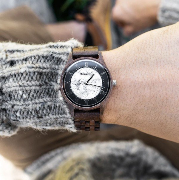 For the man at ease anywhere in the world, wherever they may be going or wherever they’ve arrived. The Sojourn Collection is effortless with modern but bold confidence. Diverse styling makes it an everyday watch for the most eclectic of wearers. Constructed with an all-wood case, 5-link wood band, a real marble dial detailed with a stainless steel ring and combined with striking Roman numerals or bar markings create a unique layered look. Textured and balanced, like the wearer of this timepiece.