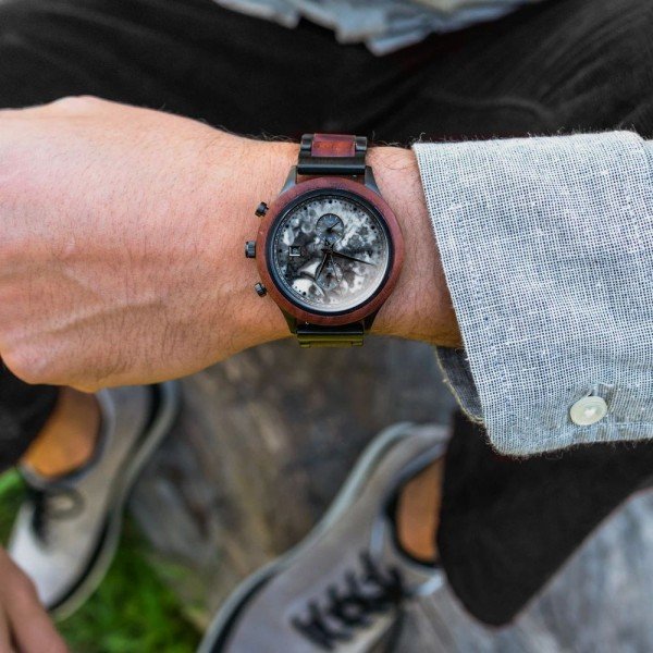 Experience new heights with Treehut’s Rise Collection. A watch ideal for the one that stands up and shows up. Subtle yet sophisticated with bold contrasts. Its minimal dot markings and two vertically placed small dials on a real marble dial symbolize the movement of the moon and the sun in our daily rituals. Created and designed for the man living in the NOW.