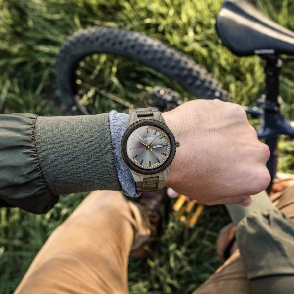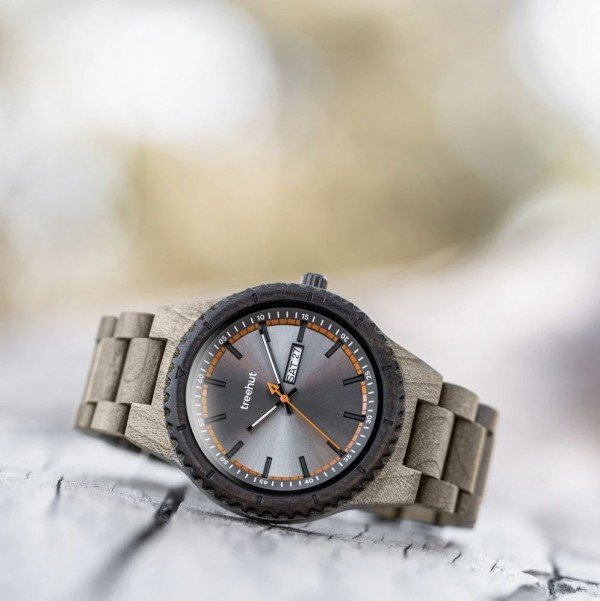Classic Collection is the very heart of the Treehut brand and will never disappoint. Classic Day-Date is inspired by exploring, being out of bounds and the mechanics of moving parts that gets you to the next stop of your adventure. It features an impressive double layered wood case with grey maple and ebony, useful day-date function, dimensional dial constructs, slim luminous hour markers and hands for better visibility in dim lit conditions. The case of this Classic Day-Date Silver Maple Grey watch is made from grey maple wood and ebony wood, producing in a light weight everyday adventure piece.