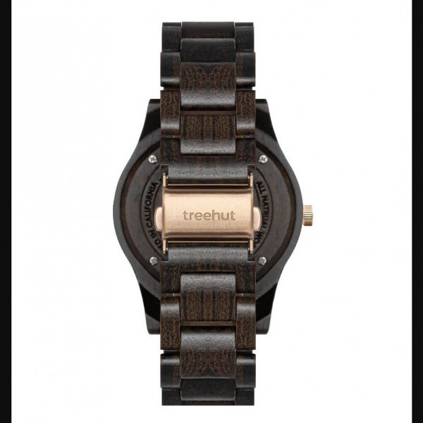 Dubline Ebony Rose Gold mens watch is made with natural ebony wood. Designed with a black sun ray dial detailed with rose gold glow-in-the-dark hourly markings and hands.